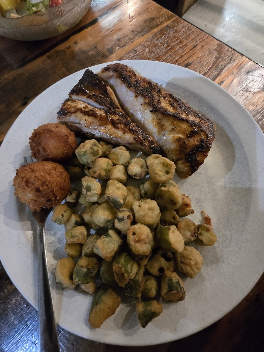 We arrived early and sat immediately. Our waitress was welcoming and friendly. We ordered raw oysters, a Captain's Platter and rainbow trout. Everything was prepared admirably. The oysters were cold and fresh, the trout was delectable and the platter was filling. Look forward to our next time. It is fresh seafood, so its not cheap. And the hours are inconvenient for people with a regular schedule.
